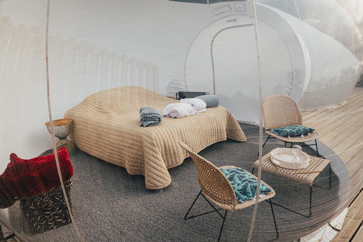Notre Bulle Suite c'est l'assurance de vacances en famille originales, profitez d'un espace en pleine nature pour des vacances insolites avec ado. A la nuit tombée, installez vous dans votre lit Queen-size et laissez vous séduire par le spectacle.